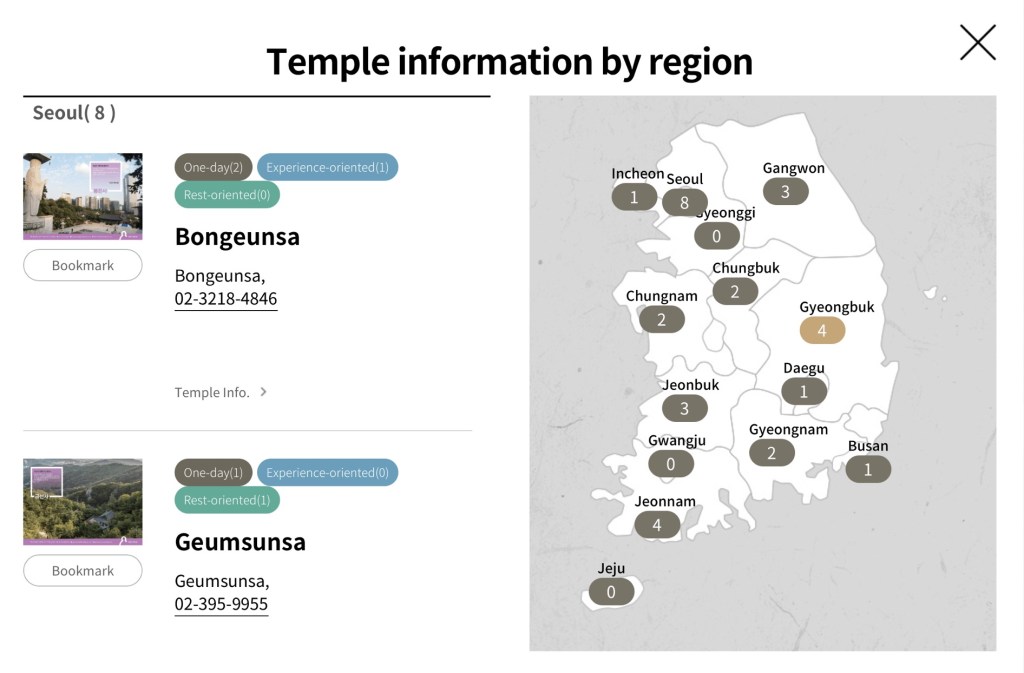 You can search by region, temple name, or even by the type of experience you’re looking for, By setting “Detail” filter
