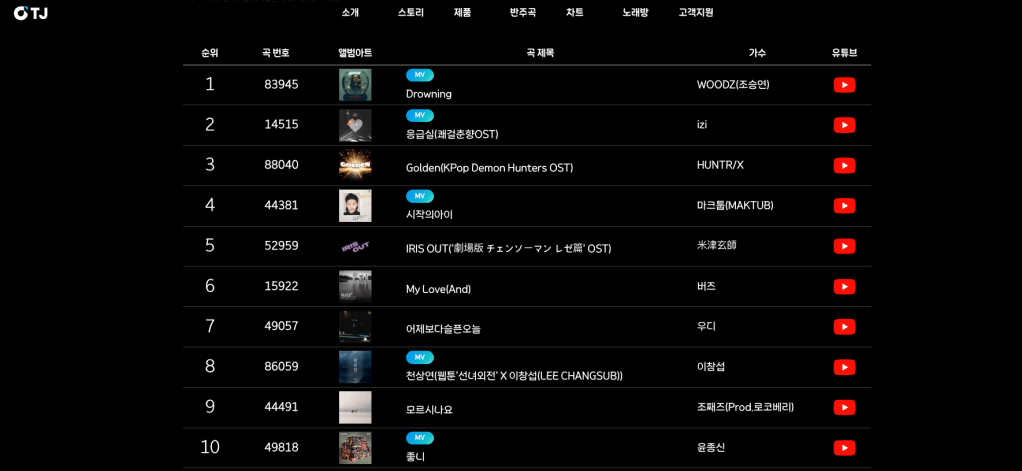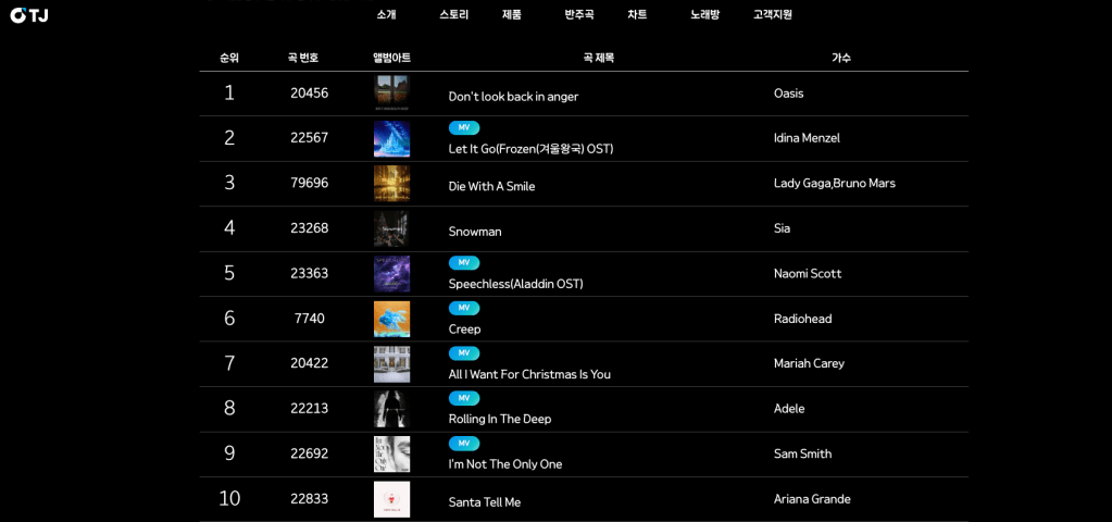The photo below shows the top 10 pop songs most frequently sung by Koreans in karaoke so far. Pretty interesting, right?